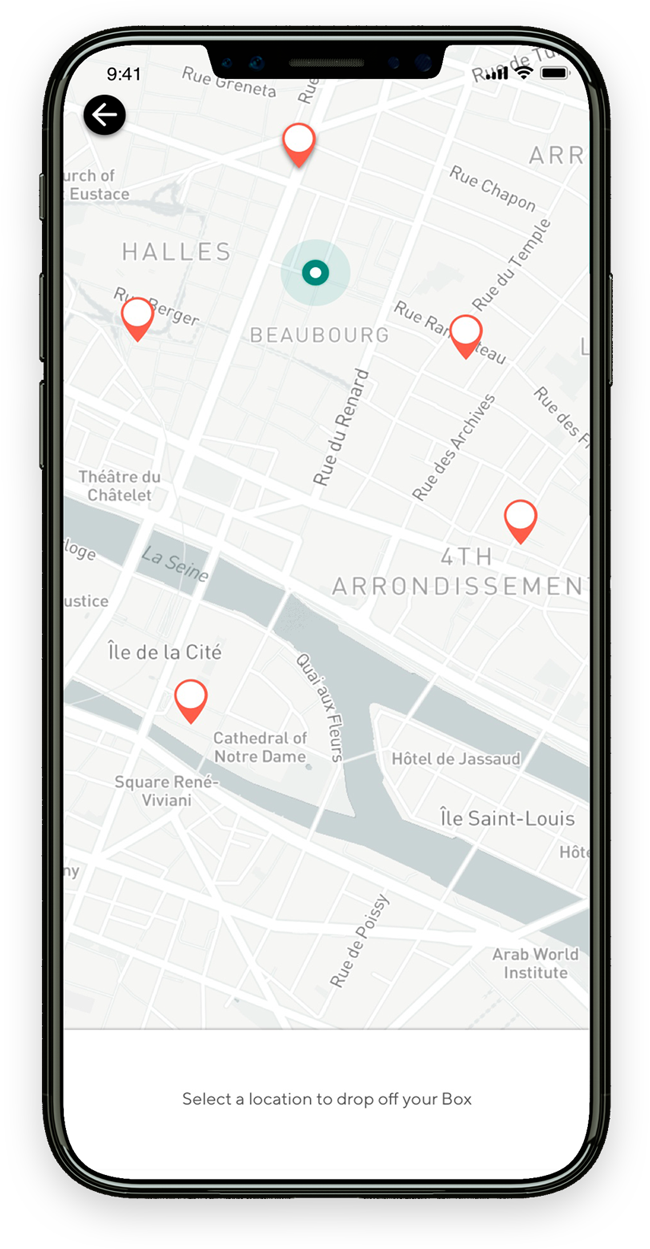 At a glance on the map, choose your collection point to drop off THE BOX.